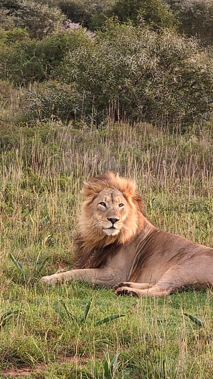 Only minutes later, we encountered a stunning male lion, whom Raymond called "the Nomadic." Raymond explained that he was gaining confidence around the pride. We watched in awe as he roared powerfully toward the Southern pride, his mighty roars echoing throughout the valley. The next day, we were fortunate to see him again, this time even closer. The lion’s deep, resonant roars literally vibrated within us, leaving us speechless. Raymond’s visible excitement matched ours; he shared with great enthusiasm that it was his first time witnessing the Nomadic male assert himself so boldly.
