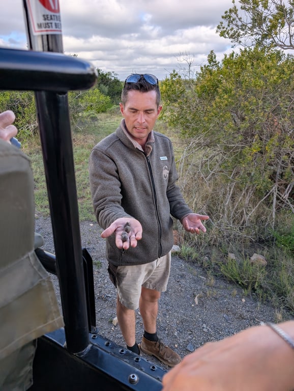 Raymond brilliantly built our excitement from the very first moment. Our initial safaris started by encountering common mammals such as the Blesbok, Kudu, and Impala, affectionately known as the "McDonald's of the bush". Raymond humorously explained how all the ostriches had disappeared, eaten by lions, leading us to shout "Ostrich!" as a running joke whenever we went on safari.